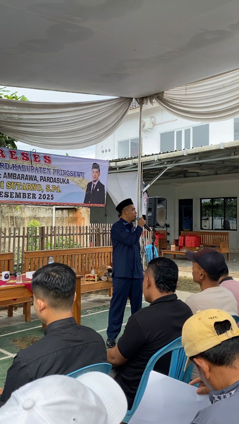 MENTARI NEWS– Anggota DPRD Pringsewu dari Fraksi PAN, Dedi Sutarno, menggelar reses di Pekon Ambarawa, Kecamatan Ambarawa, Minggu (14/12/2025), untuk menampung aspirasi masyarakat terkait normalisasi sungai-sungai kecil dan perbaikan infrastruktur lingkungan. Reses ini dihadiri kepala pekon Al-Huda, sekretaris PAN Kabupaten Pringsewu Eko Andriono, tokoh masyarakat, serta perwakilan kelompok masyarakat dari berbagai lapisan, dengan jumlah peserta mencapai ratusan orang.