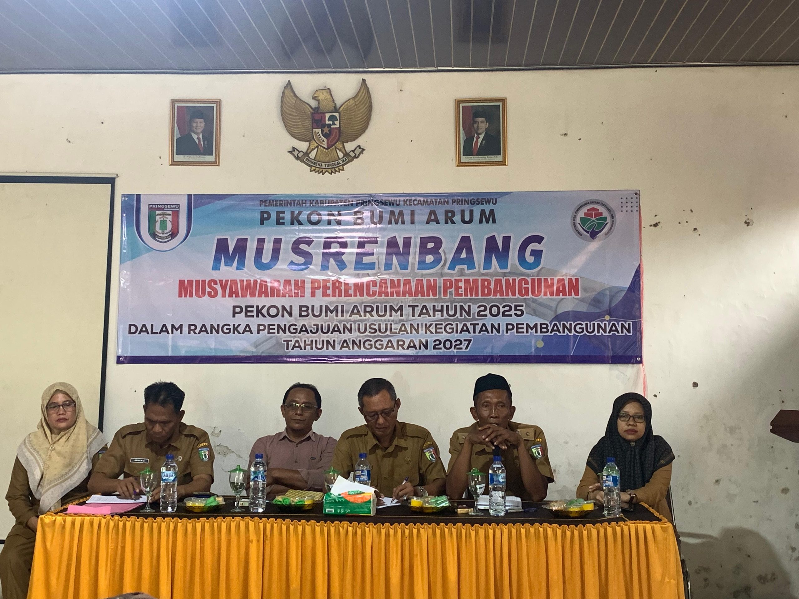 Musrenbang ini dihadiri oleh Kepala Pekon Bumiarum Sugimin, jajaran aparatur pekon, unsur uspika Kecamatan Pringsewu, BHP Pekon Bumiarum, Bhabinkamtibmas, bidan desa, dan sejumlah tokoh masyarakat. Suasana musyawarah berlangsung aktif, di mana warga turut memberikan masukan mengenai kebutuhan pembangunan yang dianggap paling mendesak.