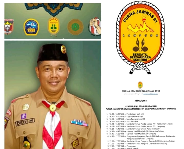 MENTARI NEWS — Hari Jumat, 29 Agustus 2025, menjadi momen penting bagi komunitas Purna Jambore Nasional 1991 (PJN91) Provinsi Lampung dengan digelarnya pengukuhan pengurus periode 2025–2028. Acara ini dilaksanakan secara hybrid, menggabungkan kehadiran langsung (offline) di salah satu gedung pertemuan di Bandar Lampung dan partisipasi daring (online), sehingga memungkinkan anggota dari berbagai daerah di Lampung maupun luar provinsi untuk ikut serta.