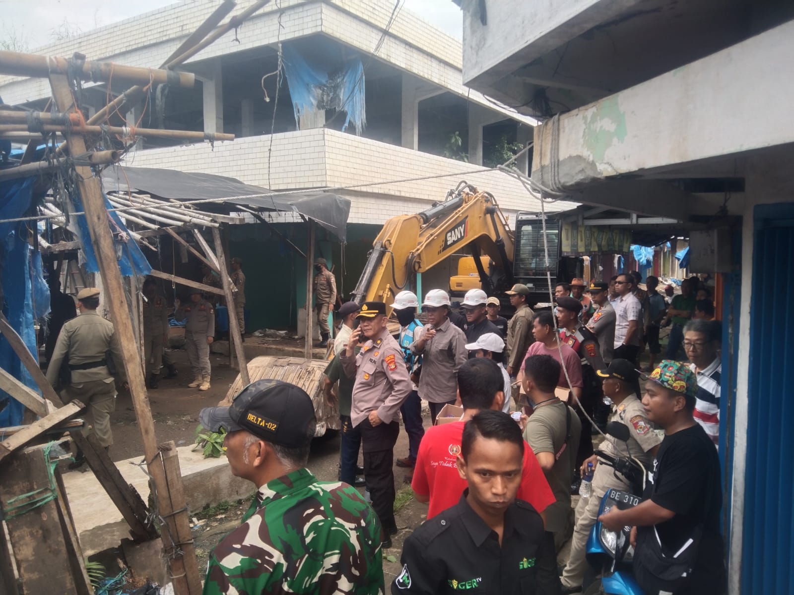 Pengembang, PT Lingga Tekhnik Utama, menghadirkan satu unit excavator untuk meratakan lapak-lapak yang selama ini menjadi tempat menggantungkan hidup para pedagang kecil. Aksi tersebut berlangsung di kawasan Pasar Pagi, Jalan Pemuda, hingga Jalan Trio Deso. Meski tanpa perlawanan besar, wajah muram para pedagang yang menyaksikan lapaknya dihancurkan memperlihatkan kekecewaan mendalam.