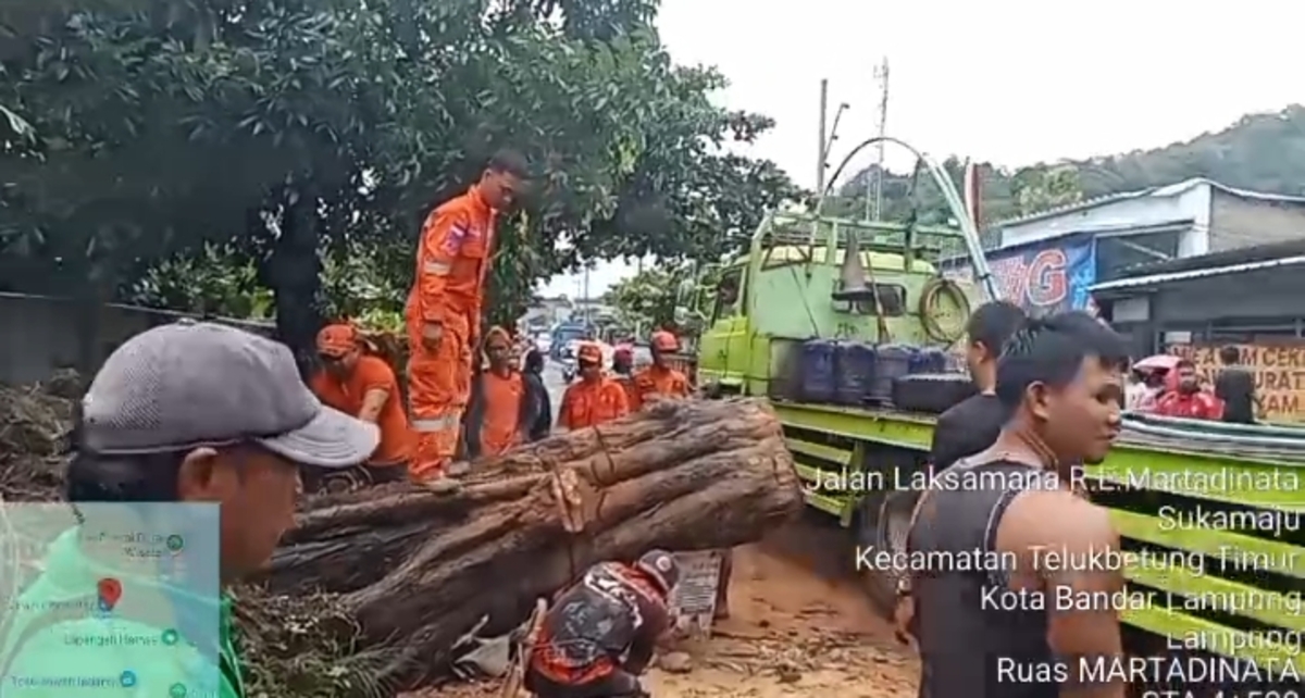 Proses evakuasi dan pembersihan pohon dilakukan mulai pukul 12.00 WIB hingga pukul 13.00 WIB oleh Tim Gabungan yang terdiri dari BPBD, Dinas Lingkungan Hidup Kota Bandar Lampung, Personel Polsek Telukbetung Barat, Polresta Bandarlampung, PLN ULP Telukbetung, Dinas BMBK Provinsi Lampung, serta warga setempat. Tim juga menindaklanjuti perbaikan jaringan listrik yang rusak akibat pohon tumbang.