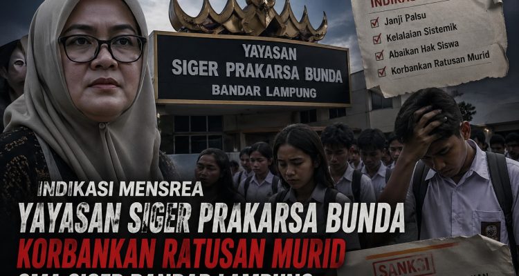Dari Dugaan Mens Rea ke Actus Reus, Kasus SMA Siger Kian Menguat Daerah|April 28, 2026by Melda MENTARI NEWS- Sejak awal pembukaan penerimaan murid baru SMA Siger di sejumlah