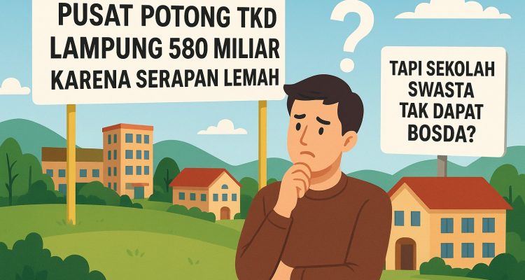 Bingung! TKD Lampung Dipangkas 580 Miliar, Sekolah Swasta Justru Gagal Dapat BOSDA Daerah|October 9, 2025by Melda MENTARI NEWS— Pemerintah pusat melakukan pemangkasan dana Transfer ke Daerah (TKD) Provinsi